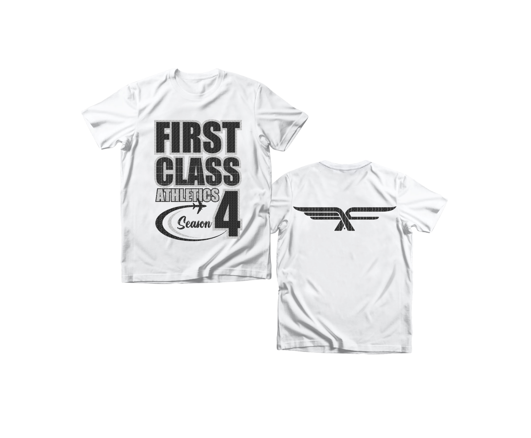 A relaxed fit with all the right details — the First Class Athletics Season 4 T-shirt blends comfort with team pride. Perfect for travel days, warm ups, or everyday wear, this tee lets you rep FCA wherever you go.
